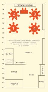 На рассмотрение предлагается несколько вариантов рассадки гостей для комфортного размещения.